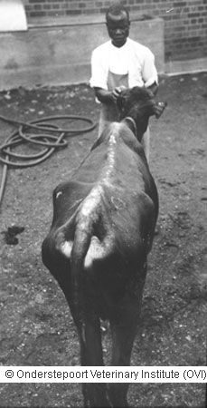 Black/white photo. Original document size: (w)3.56 x (h)7 cm. Original scanned size: 160 kb JPEG, 600 dpi. Final web-ready size: 25.38 kb. Estimate download time: 10 sec. @ 28.8 kbps. Original TIFF file housed at the Dept. Veterinary Tropical Diseases, University of Pretoria. Metadata assigned by Prof. R.C. Tustin, Professor Emeritus: DVTD. His academic and professional experience includes: veterinarian for 54 years,